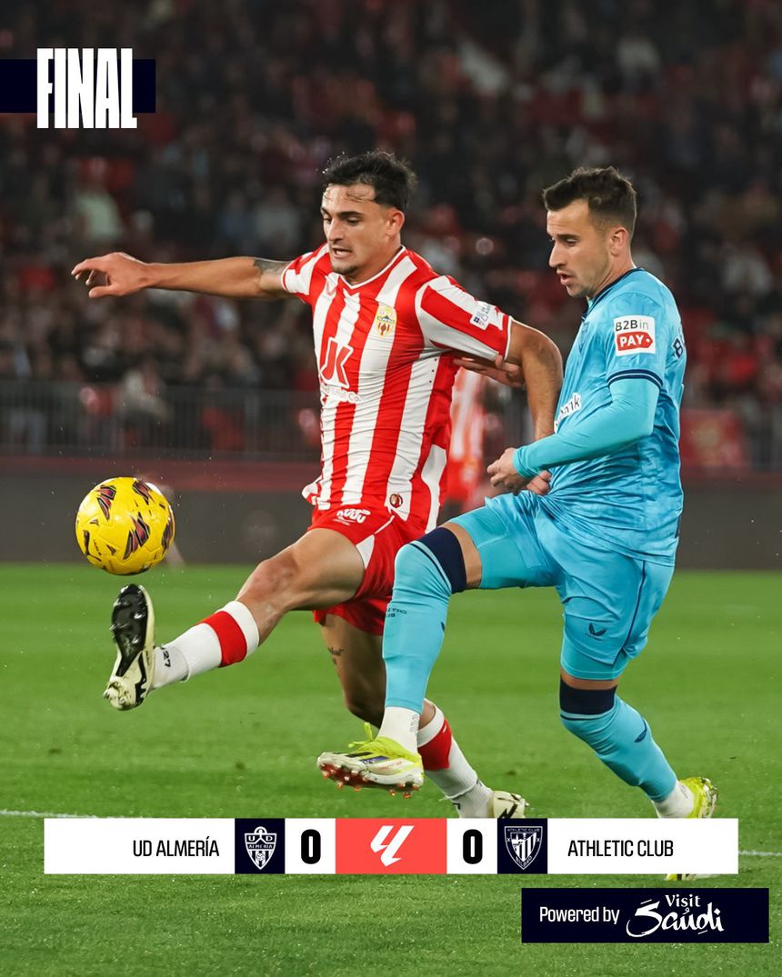 O Ath. Bilbao perde a hipótese de se colar ao Atlético Madrid no quarto posto. O Almería soma o seu sétimo ponto e está a 13 do Celta, no primeiro lugar de manutenção.
