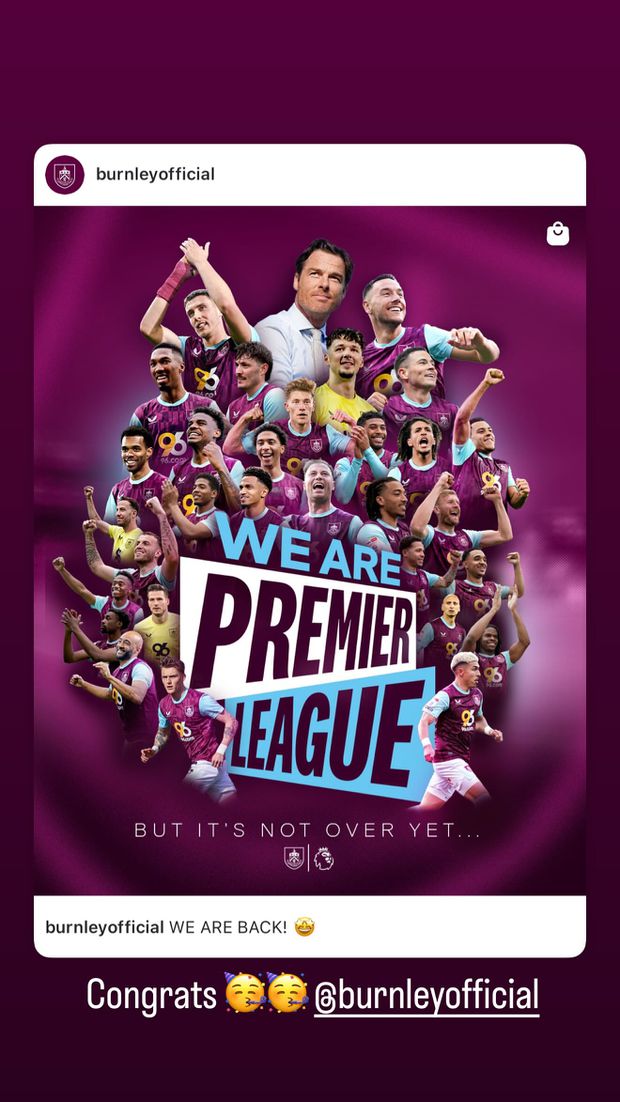 «Parabéns», escreveu o avançado numa publicação na conta do Instagram, na qual utilizou imagem do clube inglês, na qual se pode ler: «Somos Premier League. Estamos de volta.»