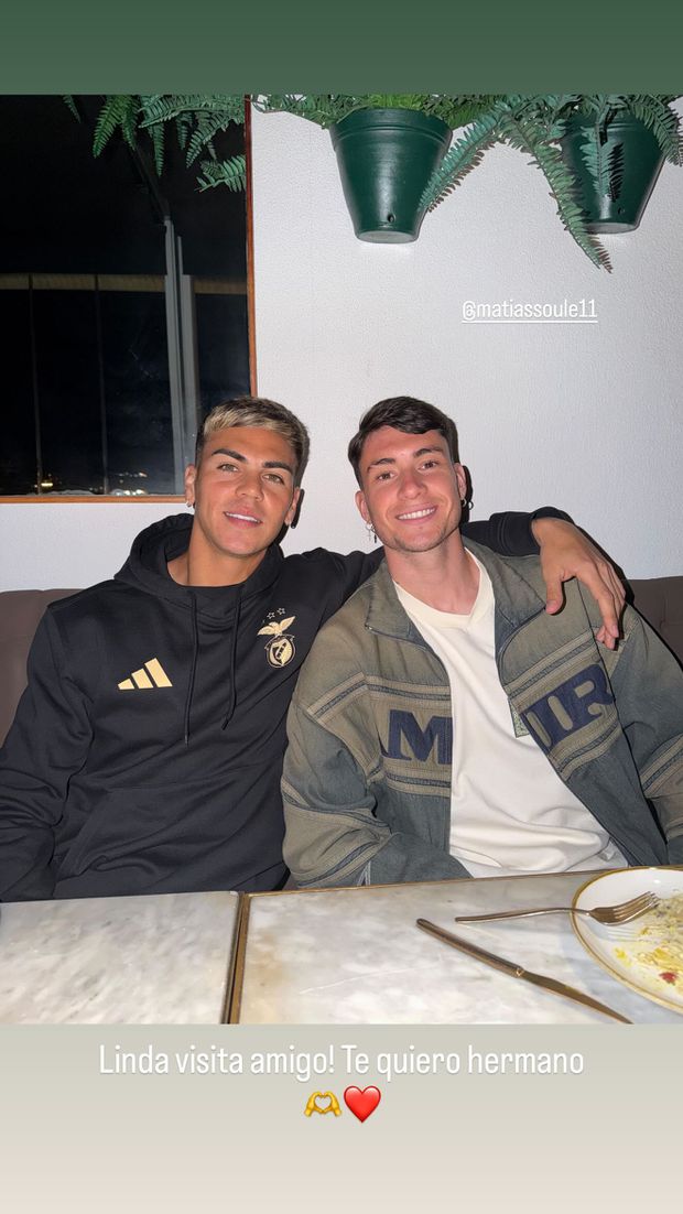 Enzo Barrenechea foi suplente utilizado no triunfo (2-0) do Benfica sobre o Nacional este domingo, após o qual publicou um story no Instagram a dar conta do encontro especial que teve com Matías Soulé, jogador da Roma e com o qual partilha um passado em comum.
