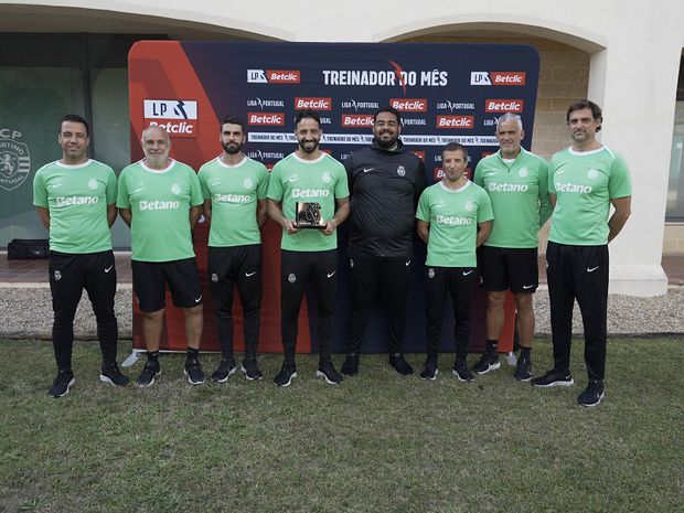 Rúben Amorim, que, como sempre, fez questão de estar ladeado por todos os elementos da sua equipa técnica, recebeu, esta sexta-feira, o prémio de treinador do mês da Liga, pela segunda vez consecutiva na presente temporada, numa distinção referente setembro/outubro.
