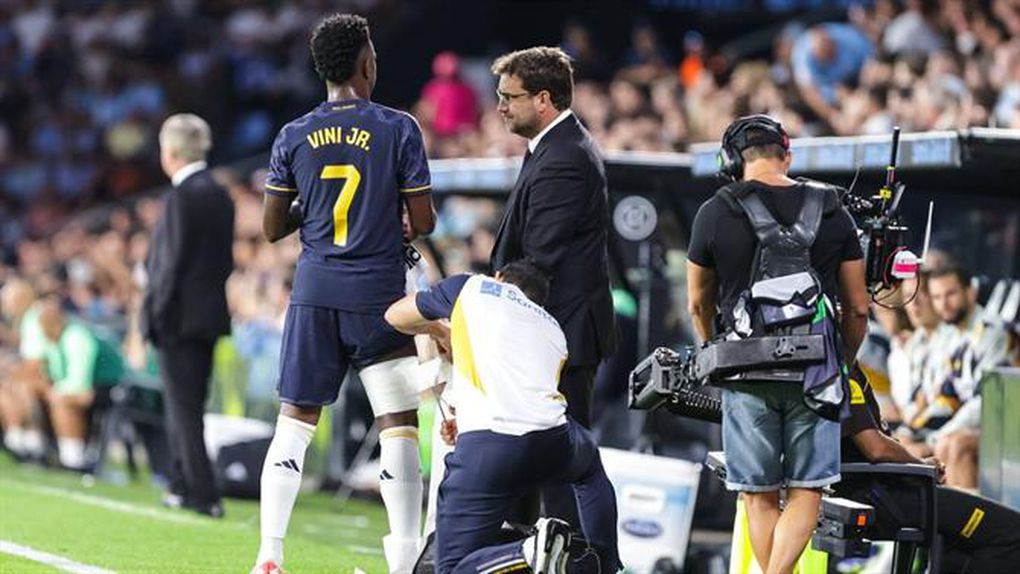 Carlo Ancelotti falou sobre Vinícius Júnior, que saiu do encontro entre Real Madrid e Celta, da terceira jornada da La Liga, à passagem do minuto 18 devido a lesão.