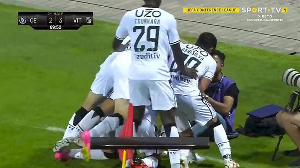 Inicialmente foi batido um livre, favorável ao Vitória, para o interior da área, com o guarda-redes a anfitrião a aplicar-se para negar o 3-2, a bola é rechaçada para a entrada da área e o central surge com dotes de artilheiro a marcar golo soberbo para os 'conquistadores'.