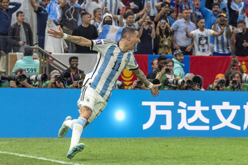 Por fim, o Mundial-2022, o seu quinto e último título pela seleção principal da Argentina, e o mais marcante. A França foi derrotada apenas nas grandes penalidades, já sem Di María em campo. O jogador foi substituído aos 64 minutos, mas saiu com a equipa a vencer por 2-0 e contribuiu decisivamente para os dois golos: primeiro com um penálti sofrido, que Lionel Messi converteu, e depois com um golo marcado, assistido por Alexis Mac Allister.