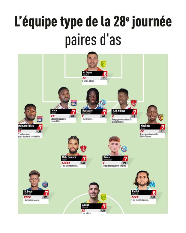 Numa jornada que consagrou o PSG como campeão, Desirée Doué é o único no onze.