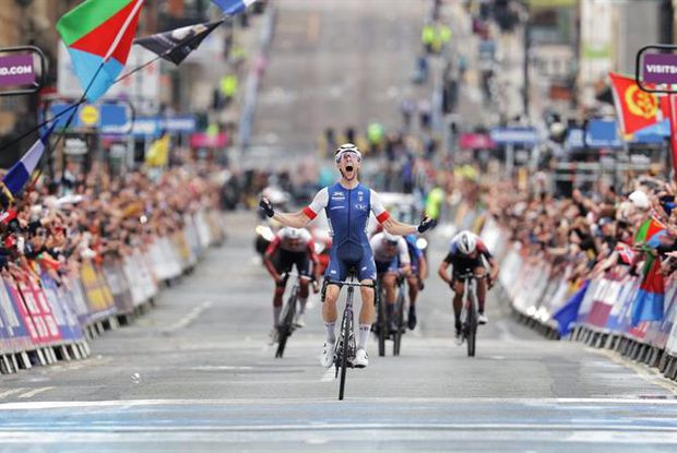 O português foi o mais rápido do quinteto que perseguiu o francês Axel Laurance, novo campeão mundial, ao cortar a meta com dois segundos de vantagem sobre o grupo perseguidor, após 168,4 quilómetros entre Loch Lomond e Glasgow.