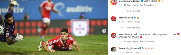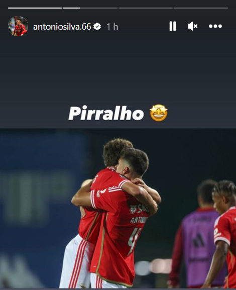 Nas stories daquela rede social, António Silva também partilhou imagem da celebração do golo com João Neves, a quem chama de pirrralho.