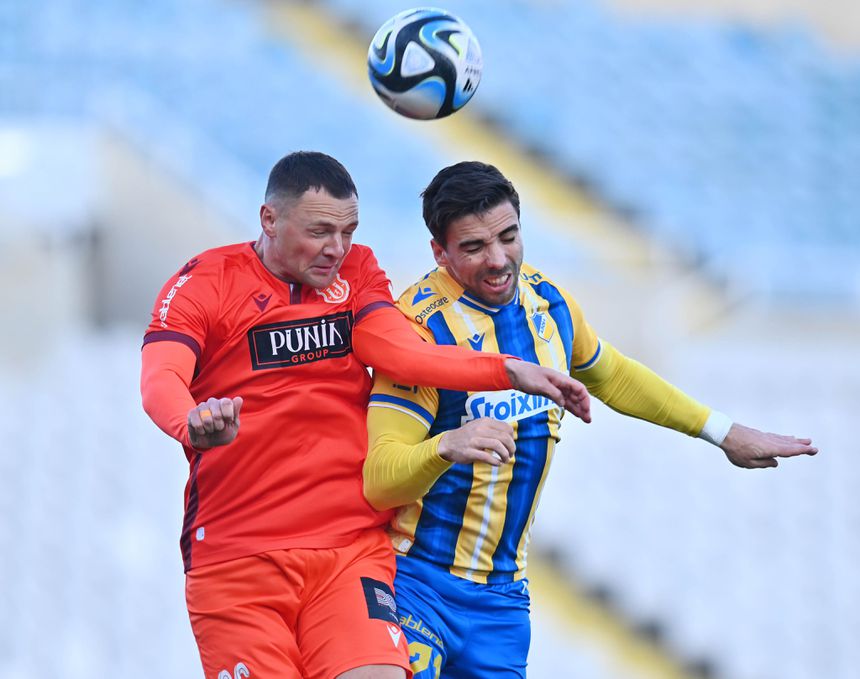 Dálcio Gomes, ex-Benfica B, inaugurou o marcador, aos 34 minutos, para a equipa do português, mas Katsantonis restabeleceu o empate, alguns segundos depois. Logo no início da segunda parte, Satsias voltou a pôr a equipa da casa em vantagem, sendo que o antigo avançado da equipa B dos encarnados ainda bisou, ao minuto 54. Kostadinov fez o quinto e último do jogo, que teve Tomané e Petrovic (ex-Sporting) a titulares, com Wilson Eduardo a ser opção a partir do banco para o final do encontro.