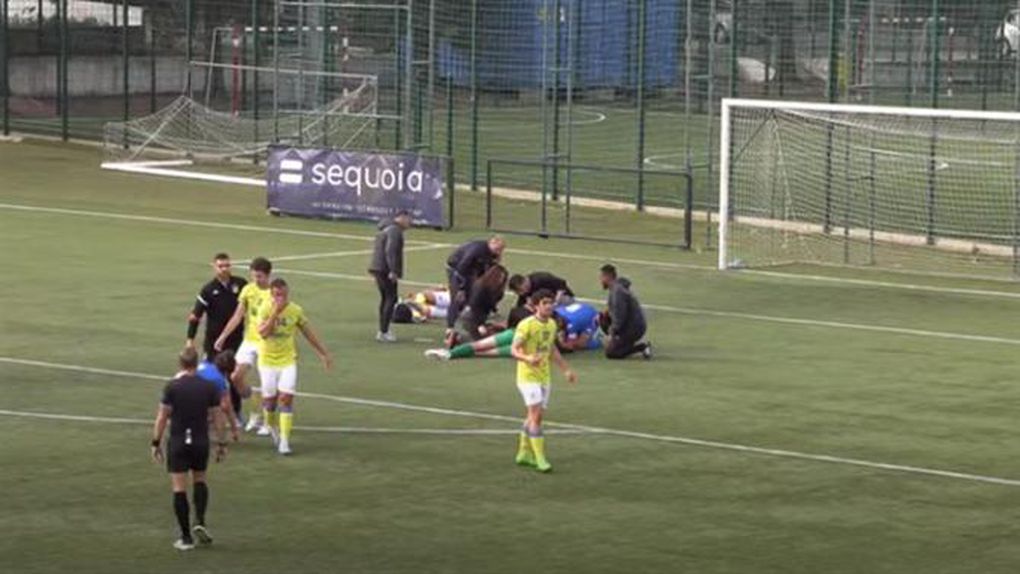 O guardião, que caiu inanimado e foi acometido de convulsões – sintoma e suspeitas de traumatismo craniano -, esperou 15 minutos no relvado que chegasse uma ambulância do INEM, que o transportou até à unidade hospitalar.