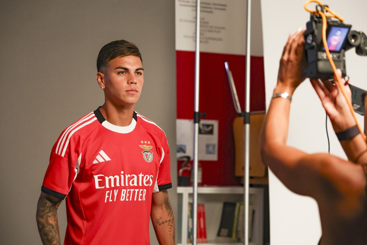 Enzo Barrenechea e Richard Ríos, respetivamente médios argentino e colombiano, contratados este verão pelo Benfica, realizaram esta sexta-feira uma sessão fotográfica oficial do clube.