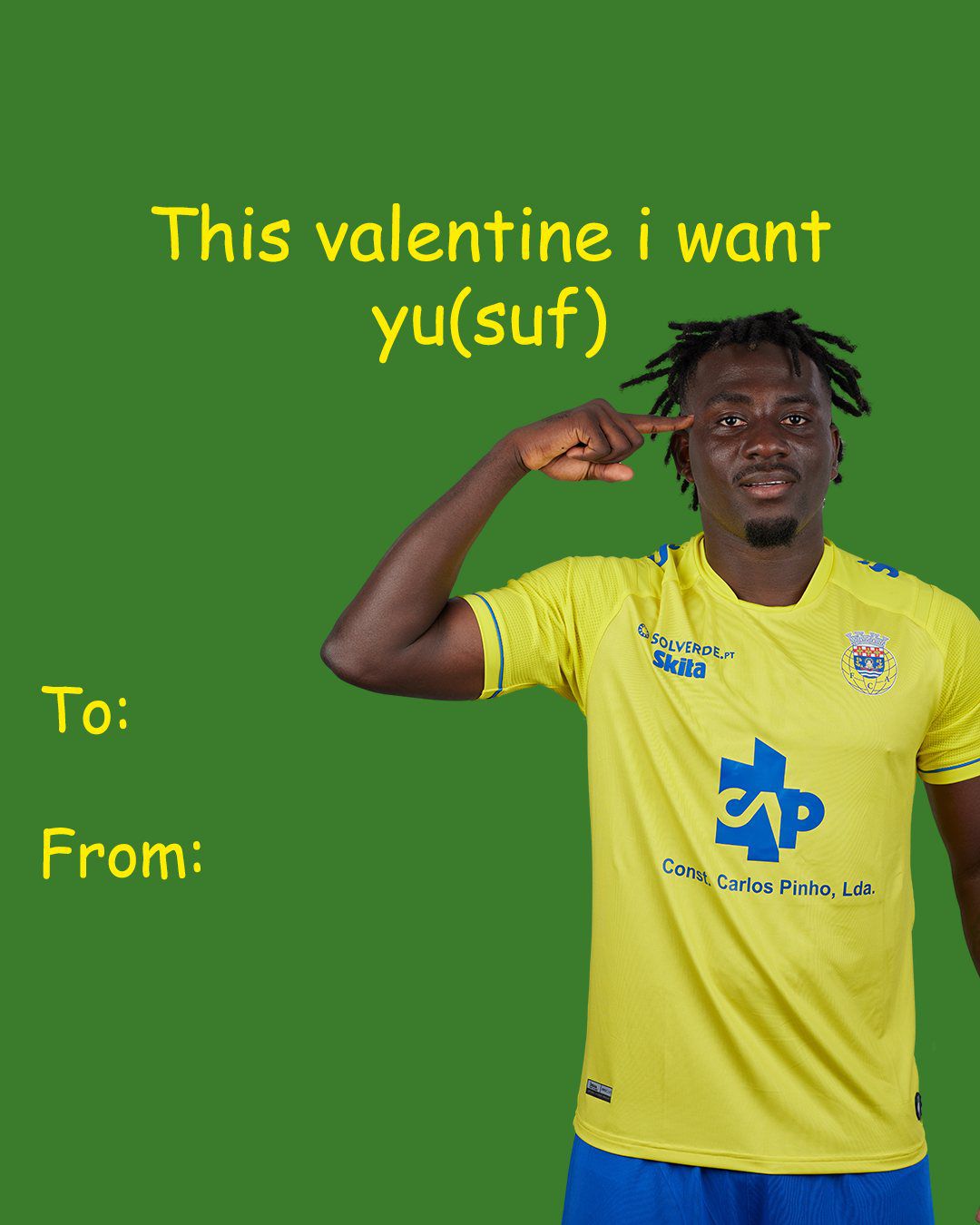 14 de fevereiro é Dia de São Valentim e enquanto várias pessoas espalhadas pelo mundo procuram maneiras de agradar ou de surpreender a sua caras-metades, o Arouca criou postais de declarações utilizando os nomes de oitos dos seus jogadores no plantel.