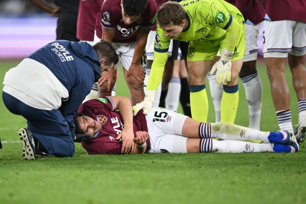 Konstantinos Mavropanos, defesa do West Ham, foi protagonista de um momento arrepiante no jogo da Premier League contra o Manchester City, ao ser atingido em cheio por um potente remate de Erling Haaland. O grego ficou imediatamente caído no relvado e teve de receber assistência médica.