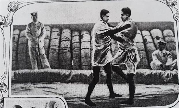 O Coliseu, de volta à cena, reabre com uma nova companhia de circo no dia 28 de setembro de 1907. O lutador japonês Raku deu uma sessão pública de jujutsu, lutando com Diogo Conelli, lutador greco-romano. A sua estreia deu-se no dia 27 de dezembro, tendo lutado também com o brasileiro João Cardoso de Moura, com o inglês Dillon, o japonês Hidesuki Hano e os portugueses Manuel Loureiro Grilo e Rui Cunha. Infelizmente, não temos conhecimento de imagens do acontecimento. Mas os repórteres da revista Illustração Portugueza (n.º 139) registaram o momento, mostrando um grande sentido emocional:
