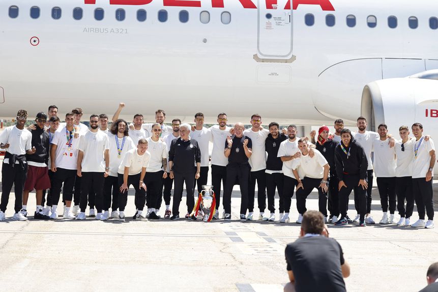 Foi com o aparato e a felicidade esperadas que a seleção espanhola foi recebida em Madrid para celebrar o título de campeã da Europa. Logo pelas 15 horas, a comitiva roja já se encontrava em terras de nuestros hermanos, com os sorrisos que são devidos a quem acabou de conquistar o mais importante troféu da Europa do futebol.