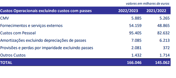 No mesmo comunicado, refere-se que os custos operacionais, excluindo custos com passes, «aumentaram 20,984 milhões de euros», devido aos prémios atribuídos pelo acesso à Liga dos Campeões na época passada, «na qualidade de campeões nacionais», assim aos prémios «pela performance desportiva da equipa na prova europeia e pela conquista da Supertaça Cândido de Oliveira, Taça da Liga e Taça de Portugal».