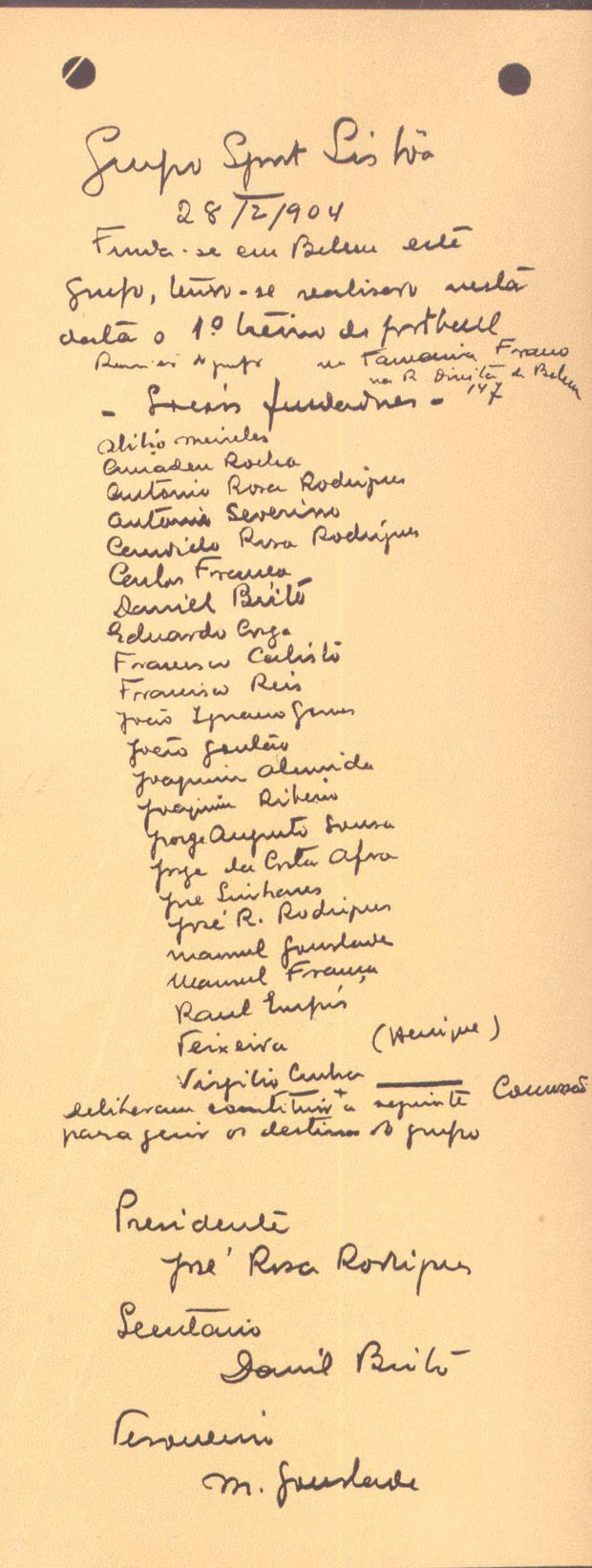 Ata da fundação do Sport Lisboa de 28 de fevereiro de 1904. Foto: D.R.