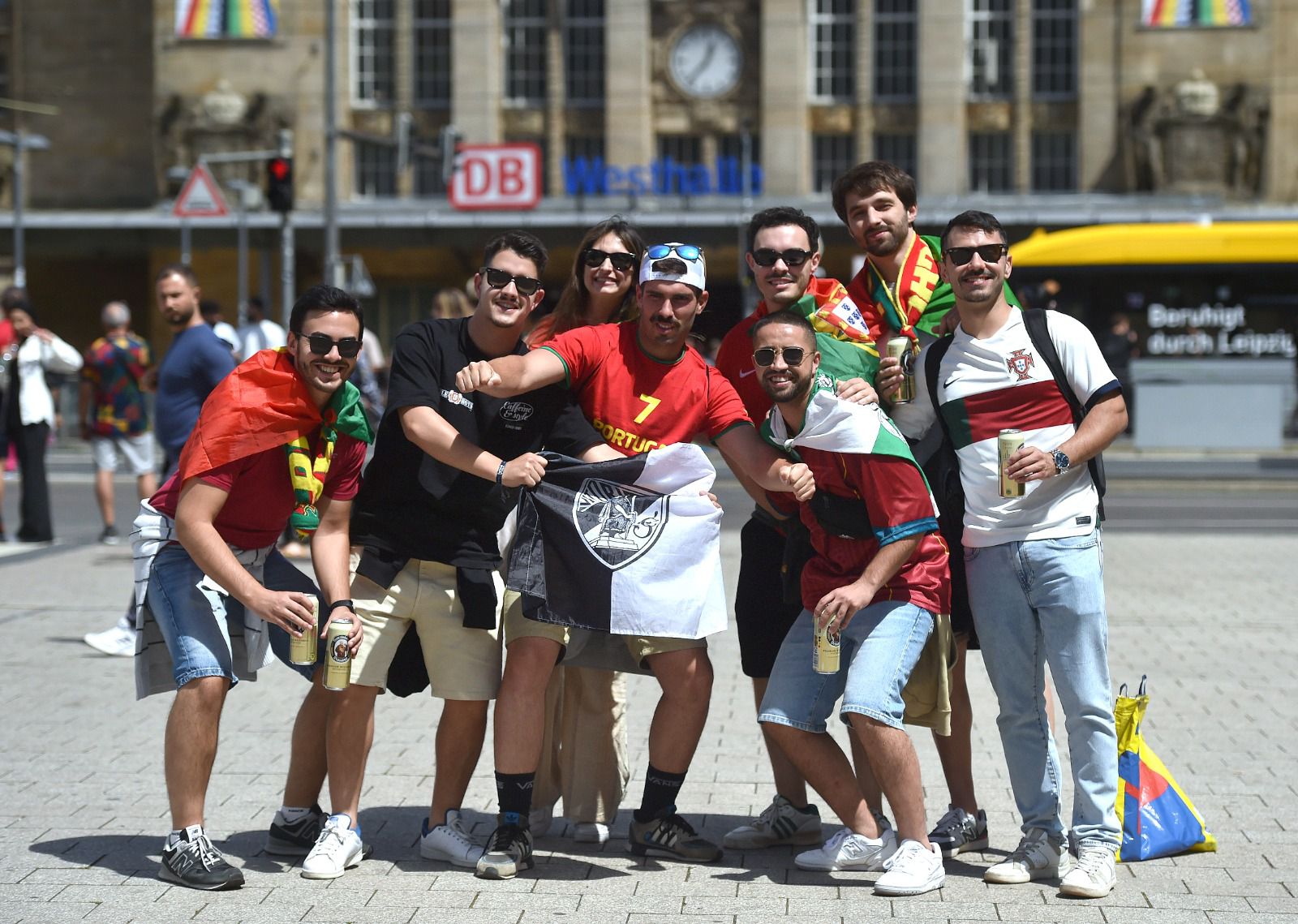 Portugal inicia, esta terça-feira, a sua caminhada no Euro 2024 e os jogadores portugueses não se poderão queixar de falta de apoio. A várias horas do início da partida frente à Chéquia, são já muitos os adeptos lusos que pintam a cidade de Leipzig com as cores do nosso país.