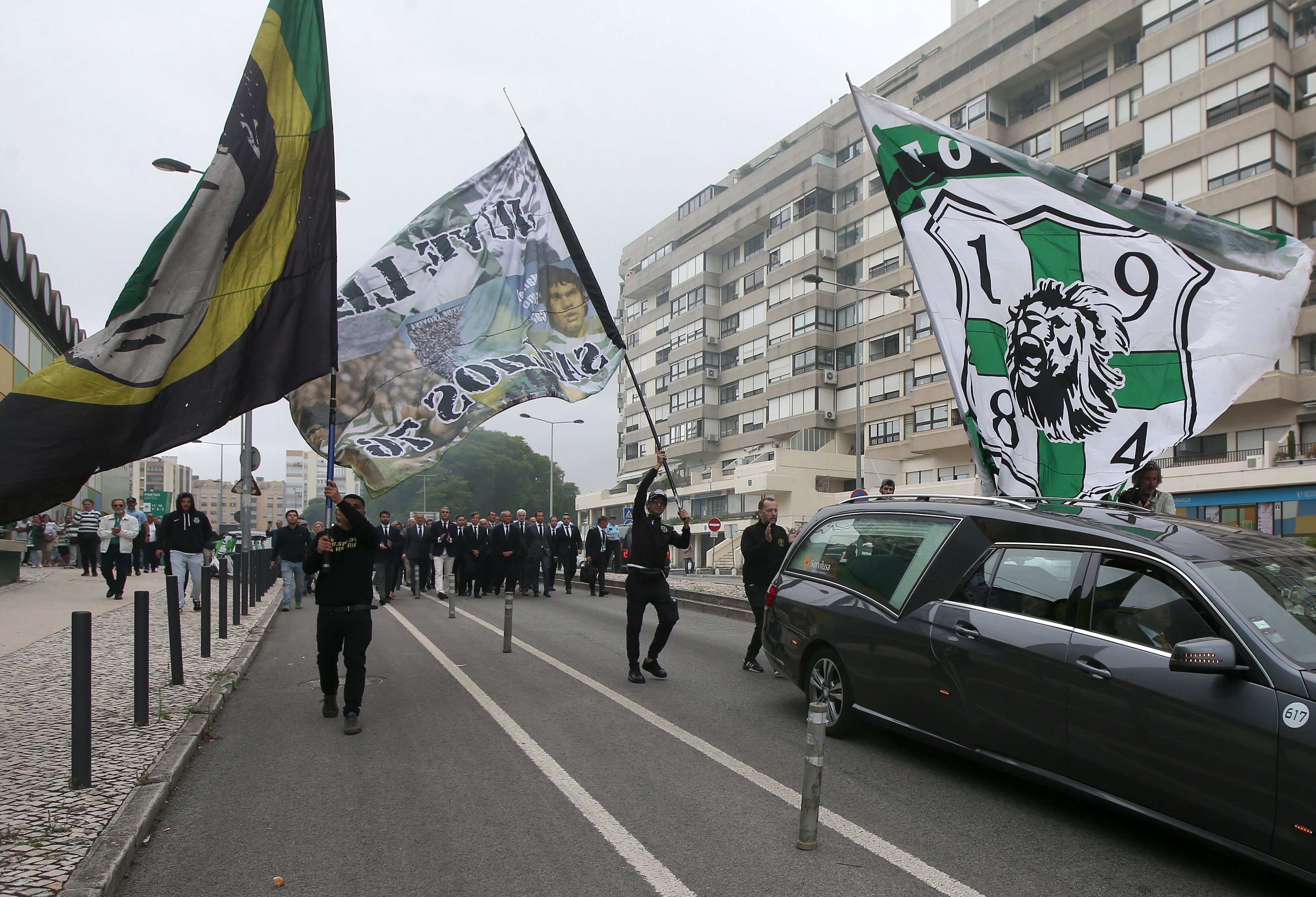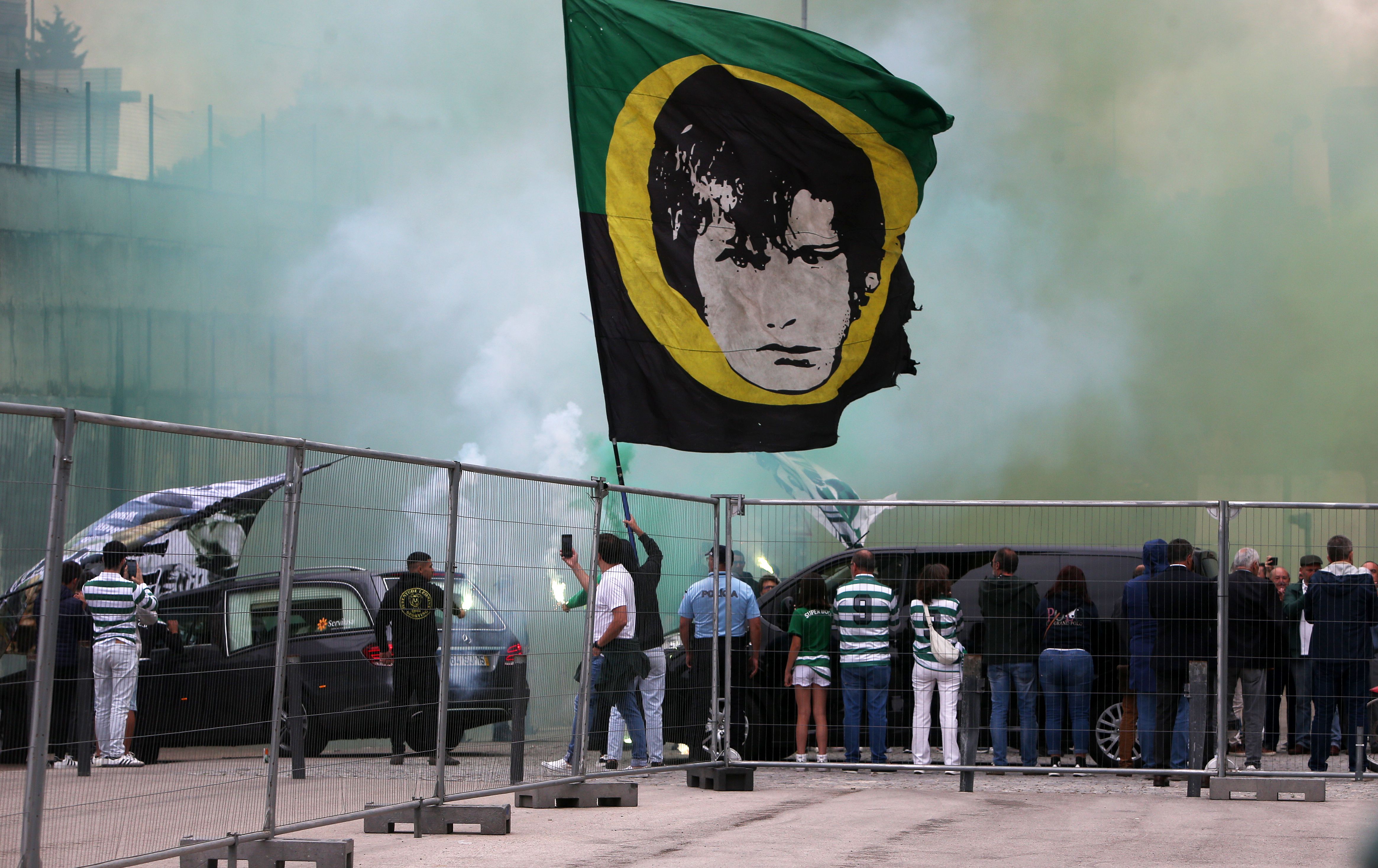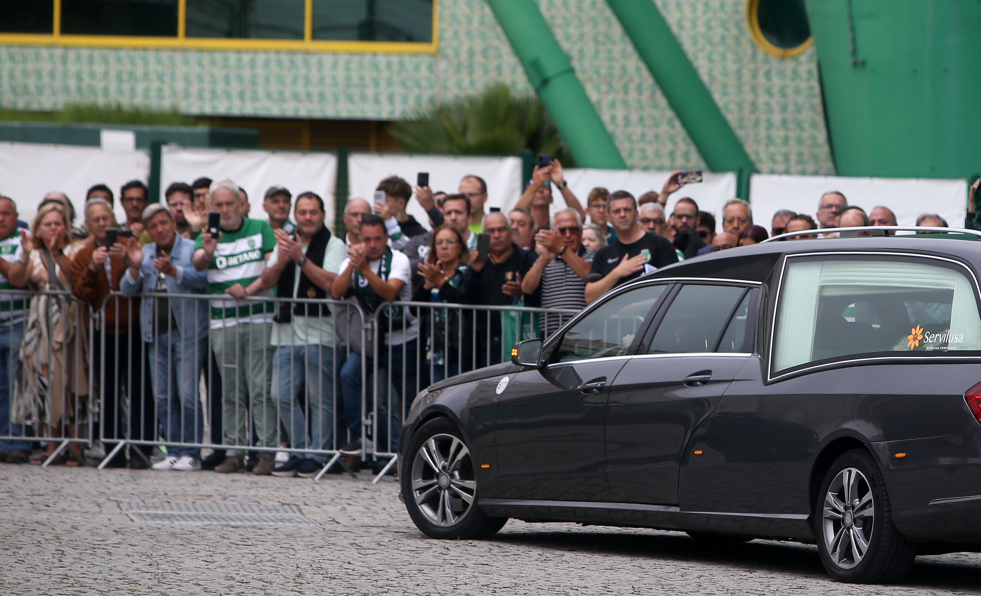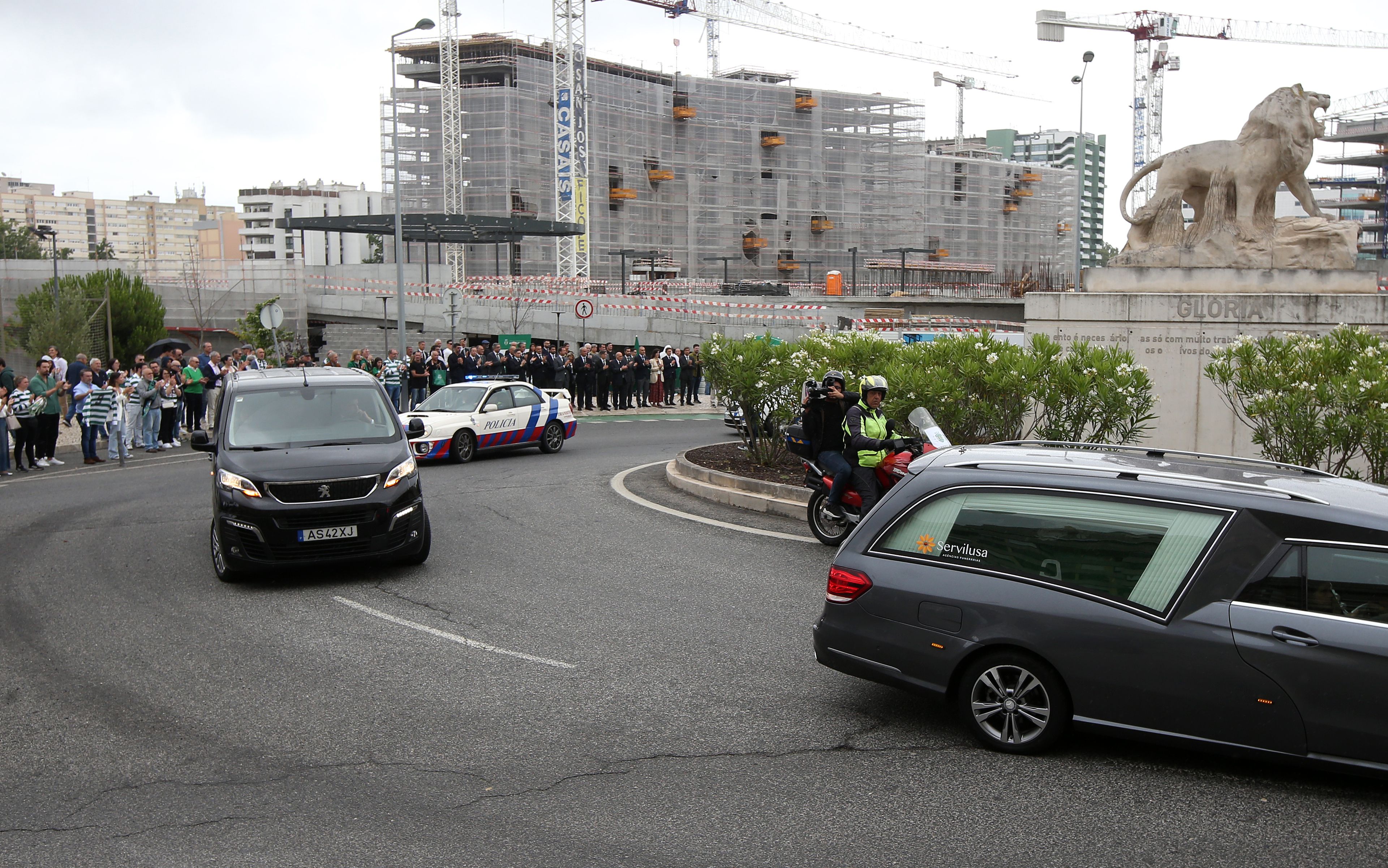 O corpo da lenda leonina partiu do Estádio de Alvalade às 11 horas, seguindo-se um cortejo a partir da Praça Centenário, antes de se dirigir para o local do funeral.