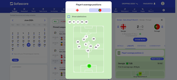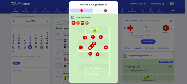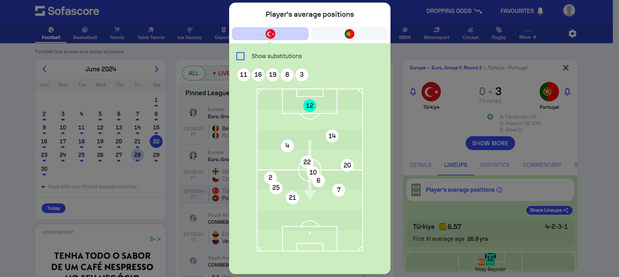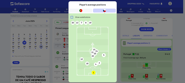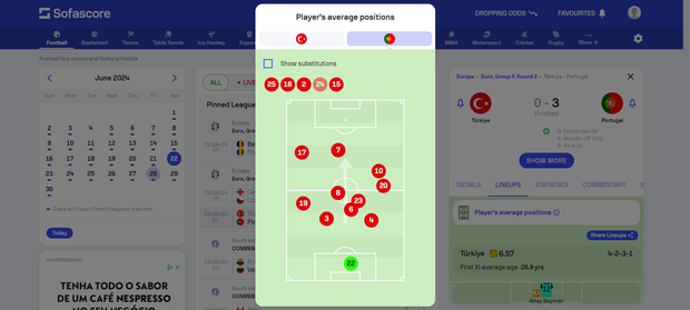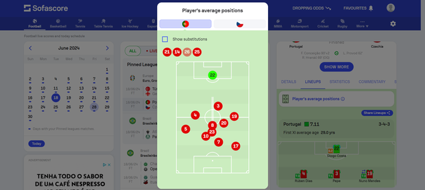 Debilidades na largura, isolamento excessivo dos extremos e de Ronaldo, e estratégia dos alas com pouco impacto na estrutura - estas são algumas conclusões que se podem retirar do posicionamento médio dos jogadores da Seleção Nacional no Euro 2024.