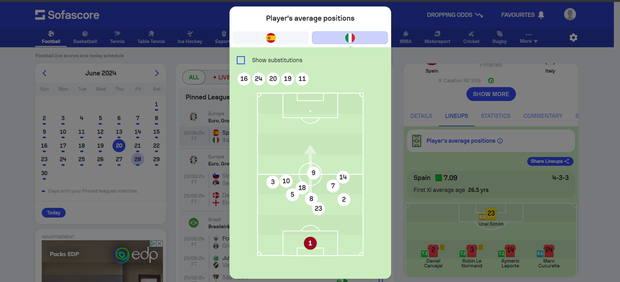 Domínio absoluto, com projeção dos dois extremos (Yamal e Williams), com Morata até mais recuado, devido ao baixar para ligar.