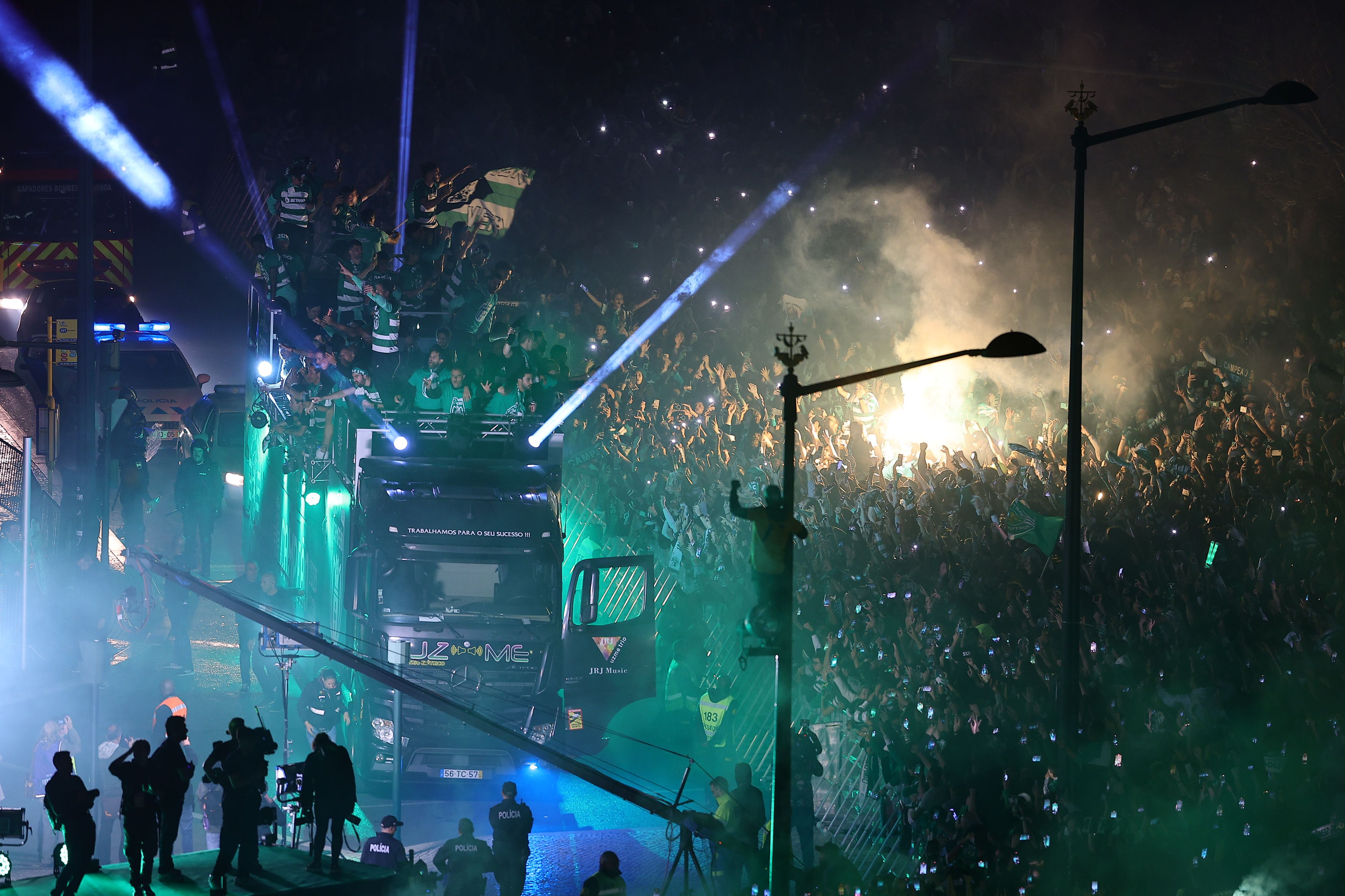 A festa tomou conta das ruas de Lisboa logo após o final do Famalicão-Benfica e foram milhares os adeptos que se juntaram às celebrações do título do Sporting. Confira algumas das melhores imagens da noite, cujo epicentro foi a praça do Marquês de Pombal.