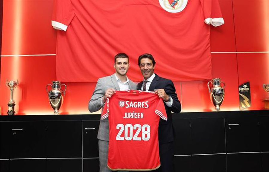 O Benfica acaba de oficializar a transferência do lateral-esquerdo David Jurásek, checo de 22 anos oriundo do Slavia Praga e que assinou contrato até 2028, a troco de 14 milhões de euros (e o Slavia Praga fica com dez por cento de futura venda)