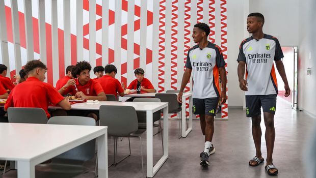 A próxima paragem da reportagem do BPlay foi o hall do edifício central do centro de estágio. «Ali são os troféus que o Benfica já ganhou. Esperemos que este ano consigamos aumentar», sublinhou Florentino, sem esquecer o mérito do academia: «Também temos dois troféus que o Benfica ganhou como melhor academia do mundo. Como já viste, os nossos treinos têm muitos, muitos jovens, mais de metade são da formação. Assim a equipa fica sempre equilibrada.»