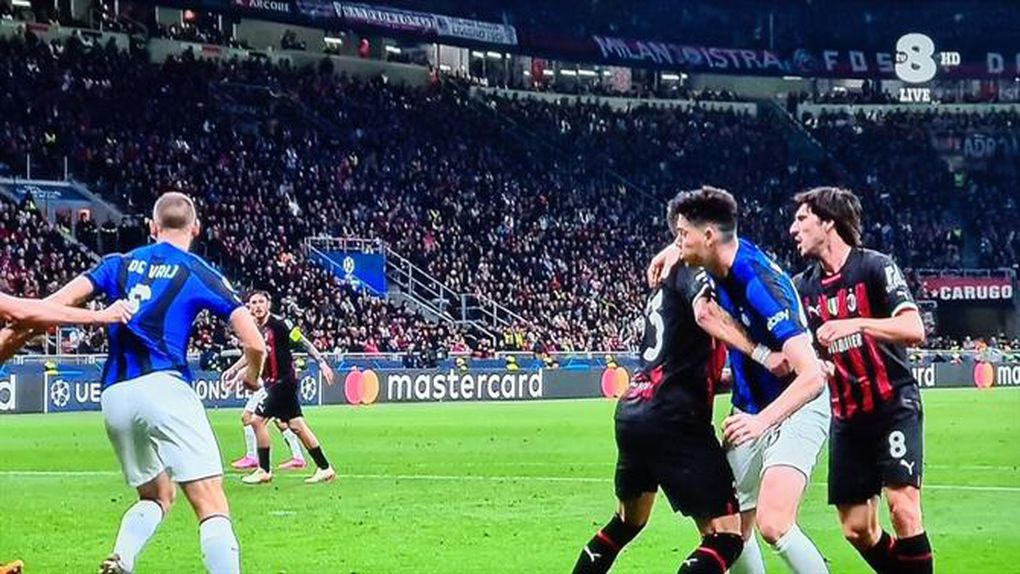Cena incrível no euro-dérbi de Milão, com Krunic (Milan) a agredir Bastoni (Inter) com um soco no estômago em plena área, na marcação de um canto, lance claríssimo para expulsão e marcação de pontapé de penálti... que não foi sancionado. Futebol ou boxe?