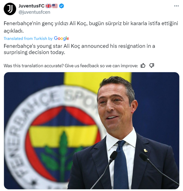 Outra das publicações alegava que Ali Koç, presidente do Fenerbahçe e que contratou José Mourinho para treinar o clube no último verão, se demitira desse cargo.