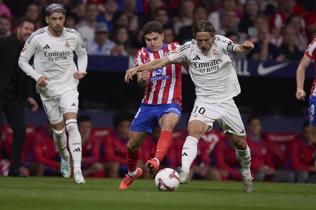Com um grande ambiente no Metropolitano – a forma como a equipa de Simeone pressionava a de Ancelotti galvanizava as bancadas –, a primeira oportunidade esteve nos pés de Julián Álvarez. O avançado argentino ultrapassou Rudiger pela esquerda e rematou, para intervenção de Courtois. O guarda-redes belga, que passou pelo Atleti, foi sempre muito assobiado quando tocava na bola, assim como Vinícius Júnior.