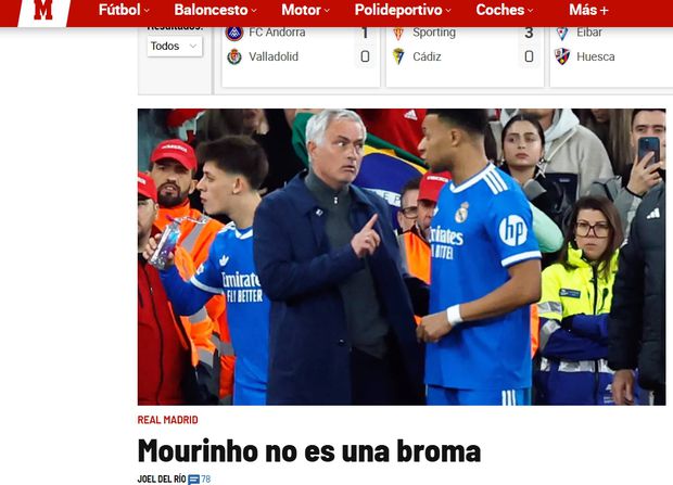 José Mourinho mantém-se sereno face aos rumores que o associam a um regresso ao Real Madrid. O técnico português, experiente no funcionamento do mercado, encara com naturalidade a especulação, que ganhou força nos últimos dias devido à perspetiva de uma época sem títulos para o clube espanhol. Na noite deste domingo, a Marca faz manchete com o técnico português, anunciando que «o regresso de Mourinho não é brincadeira».