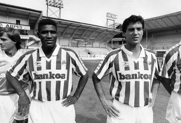 Oceano e Carlos Xavier apresentados na Real Sociedad em 1991 (Foto ASF)