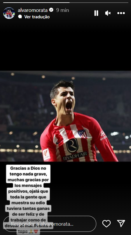 Nas redes sociais, o atacante, de 31 anos, mostrou-se aliviado: «Graças a Deus não tenho nada de grave. Muito obrigado por todas as mensagens positivas. Oxalá que toda a gente que mostra o seu ódio tivesse tanta vontade de ser feliz e de trabalhar como de desejar o mal. Em breve estarei no meu melhor.»