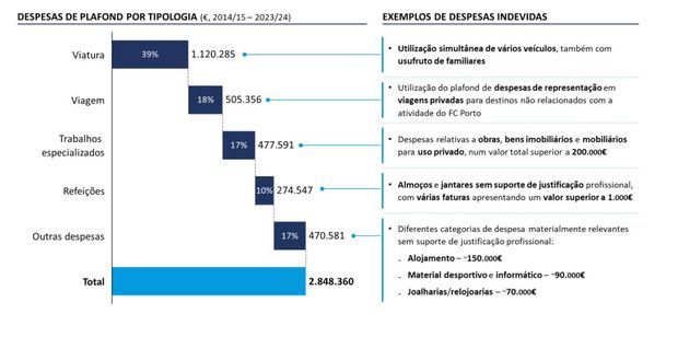 Viagens: €700 mil – Viagens privadas para destinos não relacionados com a atividade do clube.