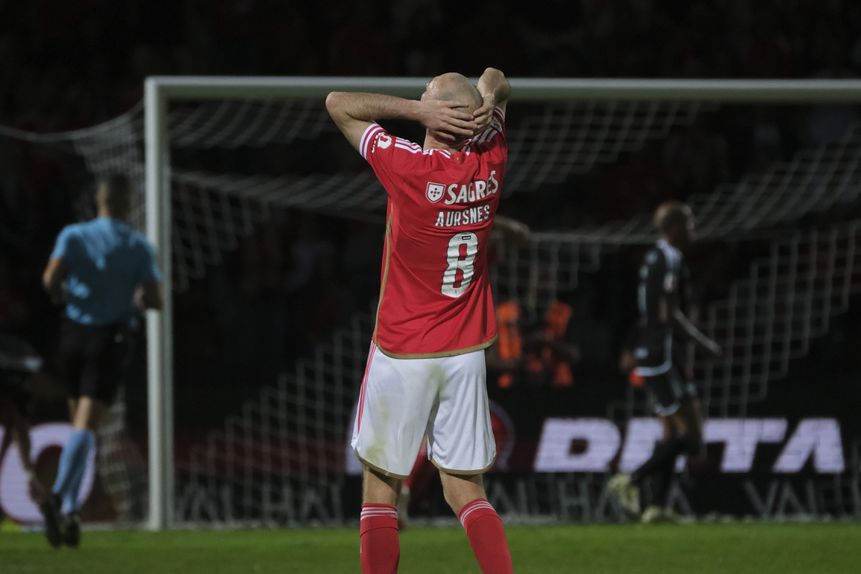 Não teve consequências para a equipa do Benfica, mas Fredrik Aursnes arriscou muito ao agarrar uma bola que ia sair pela linha de fundo, no jogo com o Casa Pia.