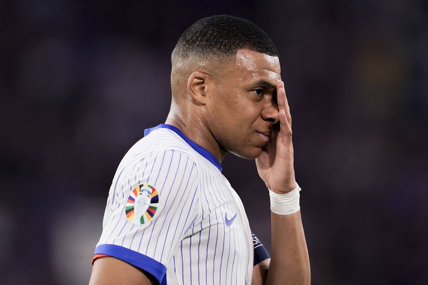 Kylian Mbappé partiu o nariz no final da partida com a Áustria, que terminou com a vitória da França (1-0), e o mais provável é que o capitão falhe a próxima partida frente aos Países Baixos.