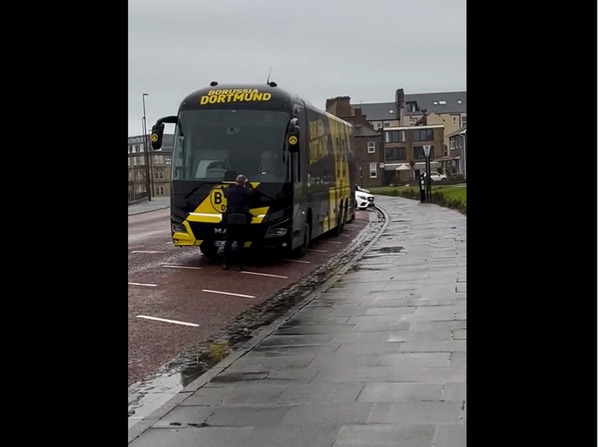 Autocarro do Dortmund... multado junto ao estádio do Newcastle