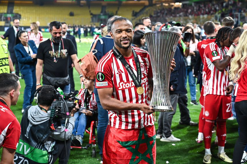 Ayoub El Kaabi foi o herói do primeiro triunfo europeu da história do Olympiakos (e de qualquer equipa grega), não só ao marcar o golo decisivo na final frente à Fiorentina, mas também por todo o seu desempenho na fase a eliminar da Liga Conferência.