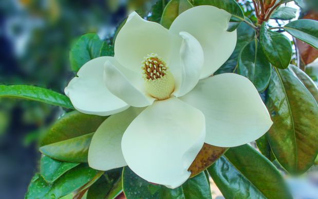 — É uma boa questão, não é? É uma boa questão. Olhe, assim de repente, magnólia. Há vários tipos de magnólia. Estou-me a referir à magnólia grandiflora, que é uma que tem folhas verdes, depois o limbo inferior cor de ferrugem, é logo um elemento distintivo. Dá umas flores brancas, carnudas. São flores de há 200 milhões de anos, são das flores mais primitivas que há, grandes, muito frondosas, com um aroma muito bom, um branco como o do Benfica. Depois o fruto são pinhas, mais ou menos de 10/15 centímetros, que a certa altura expelem as sementes, e as sementes são de um vermelho igualzinho à ao da camisola do Benfica. Então temos aqui o vermelho e o branco e ainda por cima uma árvore que eu adoro, como é a magnólia.