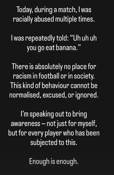 O jogador sublinhou que este tipo de comportamento é inaceitável e não pode ser tolerado. «Esta é uma atitude que não pode ser normalizada, desculpada ou ignorada», afirmou, deixando um apelo por uma mudança de mentalidades.