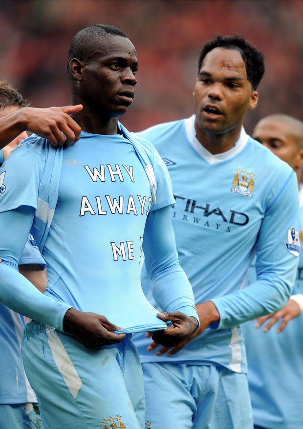 Mas foi também o protagonista de um dos momentos mais memoráveis da Premier League: o célebre festejo em Old Trafford, depois de marcar ao Manchester United, quando levantou a camisola e exibiu uma t-shirt com a inscrição «Why always me? [Porquê sempre eu?]».