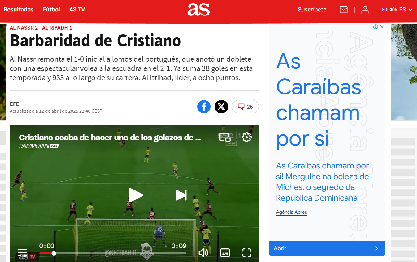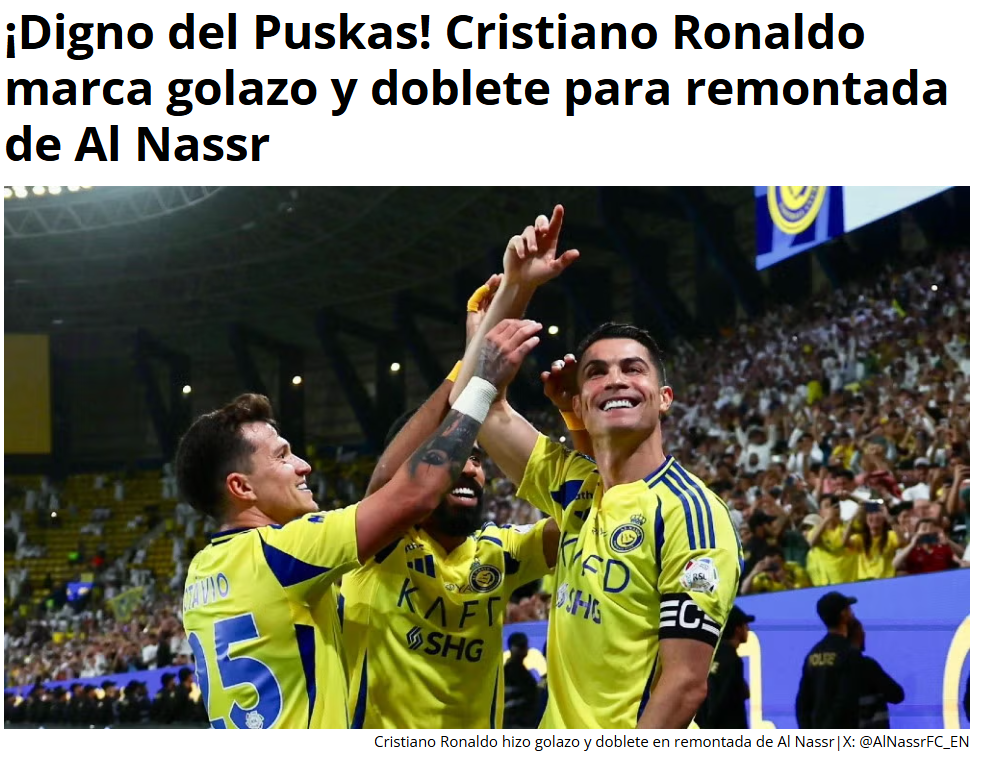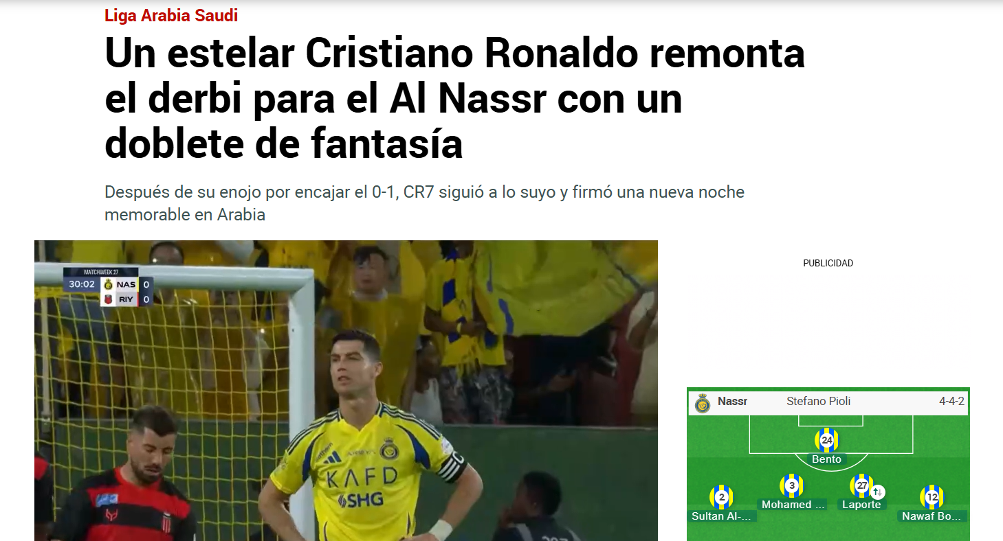 «Um Ronaldo espetacular vira o clássico para o Al Nassr com dois golos fantásticos», pode ler-se na Marca, enquanto o AS atira: «Barbaridade de Cristiano Ronaldo.»