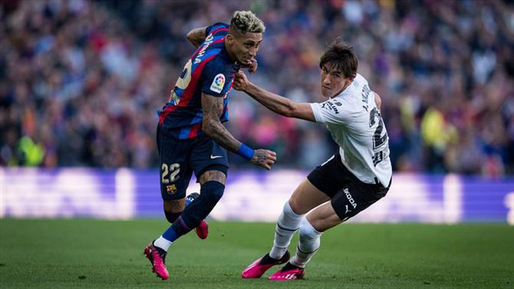 Aos 15 minutos, um grande passe de Sergio Busquets encontrou a cabeça de Raphinha na grande área, com o internacional brasileiro a desviara para o fundo da baliza. Parecia estar a construir-se uma tarde tranquila para os catalães perante um Valência que contou com os portugueses Thierry Correia e André Almeida no onze.