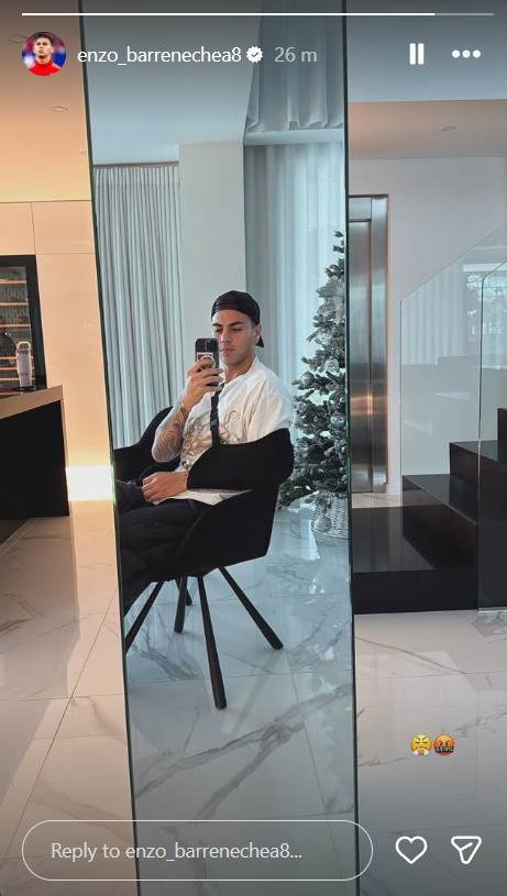 Enzo Barrenechea publicou uma fotografia nas redes sociais com o braço ao peito, a menos de 24 horas da receção do Benfica ao Estoril. Os emojis utilizados pelo médio argentino na publicação, entretanto apagada, sugerem frustração face ao o sucedido.