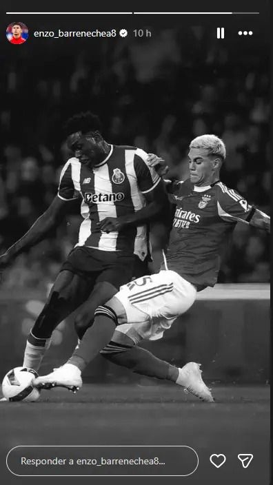 Numa segunda story publicada no Instagram, o médio argentino mostra-se numa disputa de bola com Samu, avançado portista que esteve no centro de uma polémica ao não cumprimentar Pavlidis.