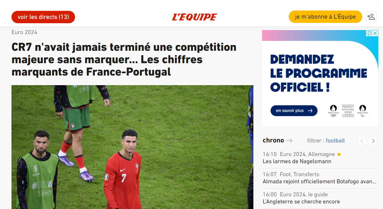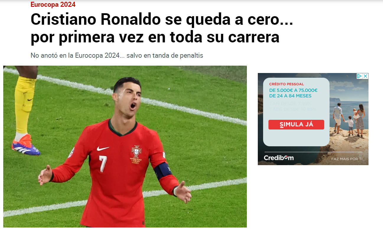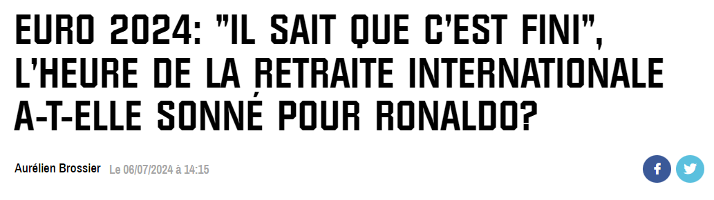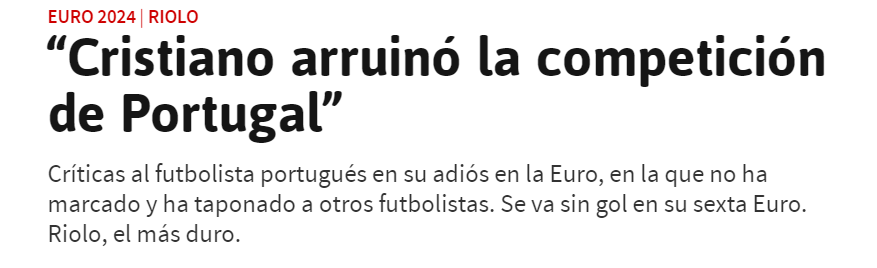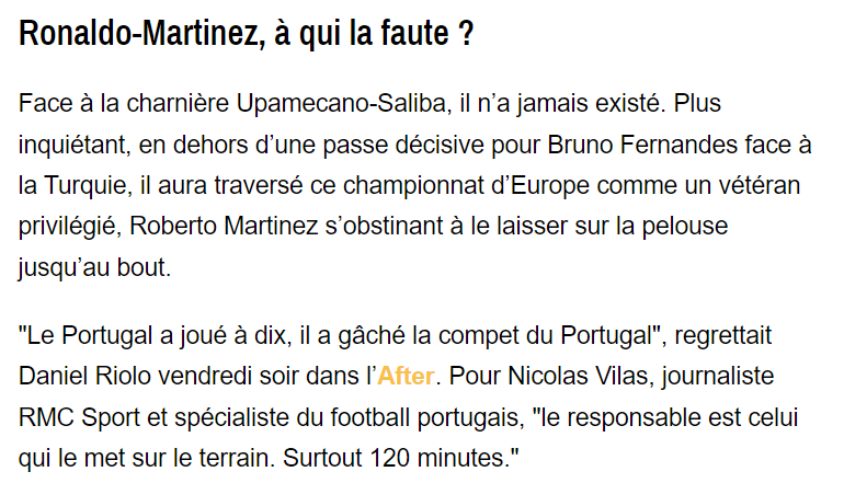 «Cristiano Ronaldo sabe que acabou a carreira internacional» e «Cristiano arruinou a prova e Portugal», são títulos de artigos de opinião que se podem ler na RMC Sport.