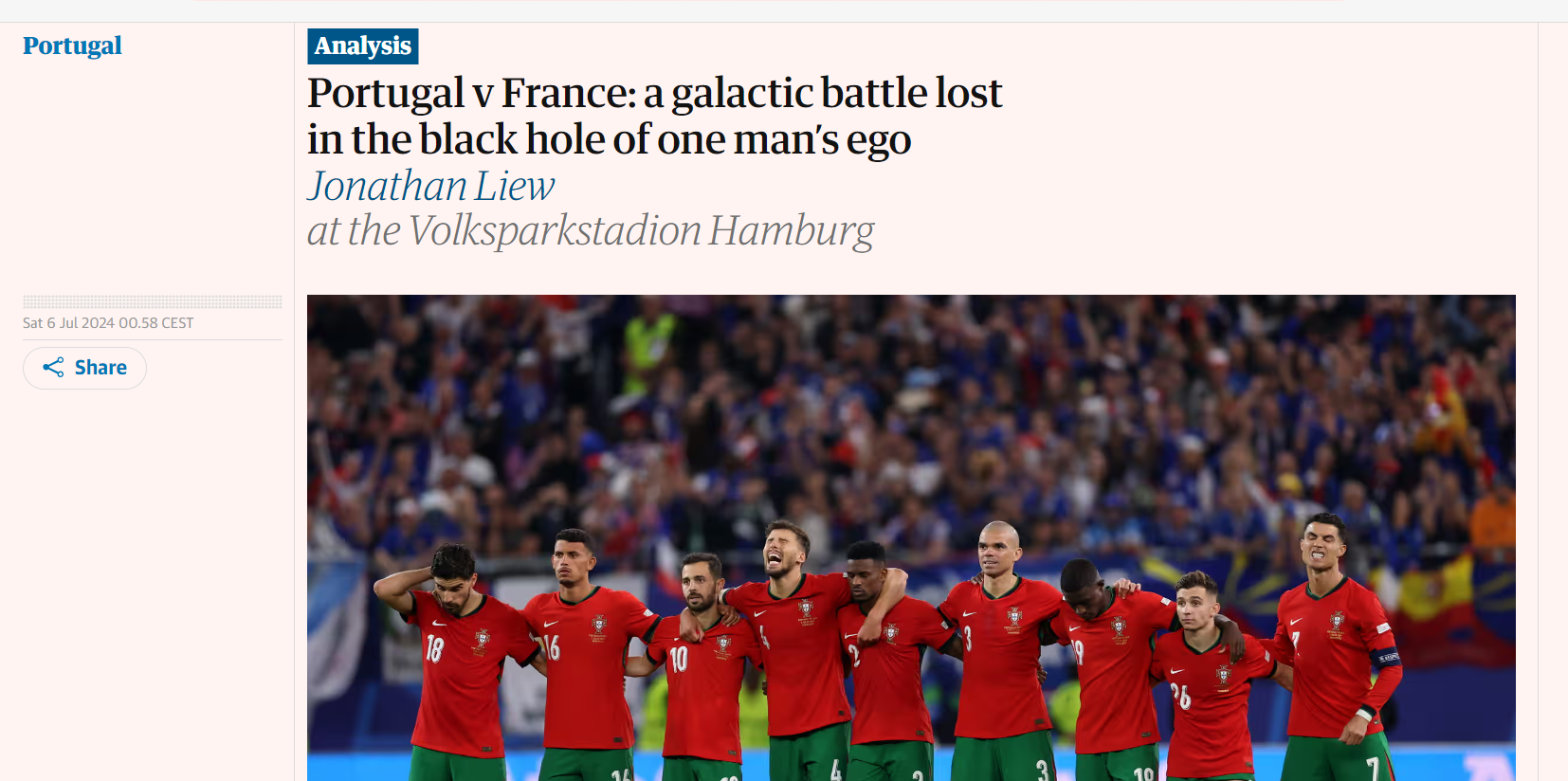 O The Guardian analisa a campanha da equipa das quinas e deixa duras críticas a Cristiano Ronaldo.