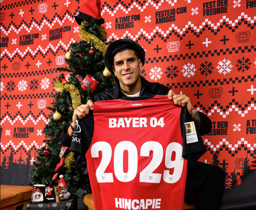 Com apenas 22 anos, o equatoriano está no Bayer desde 2021 e rapidamente ganhou o seu espaço nos farmacêuticos, que já representou por 142 vezes. Hincapié foi uma das muitas figuras do histórico título da Bundesliga que o Leverkusen ganhou na temporada passada.