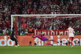 Estava lançado o jogo e a eliminatória, com o Bayern confiante e o Real Madrid atordoado. Foi dessa situação que, três minutos depois, uma bela transição dos anfitriões apanhou uma cratera no miolo merengue. Lucas Vázquez, muitas vezes aos papéis, ficou perdido, deixou Musiala entrar na área e depois derrubou o jovem criativo. Clément Turpin - que fez uma arbitragem ao nível do jogo - não teve qualquer dúvida em marcar grande penalidade, que Kane aproveitou. Estava feita a reviravolta.