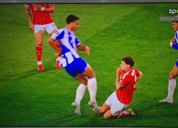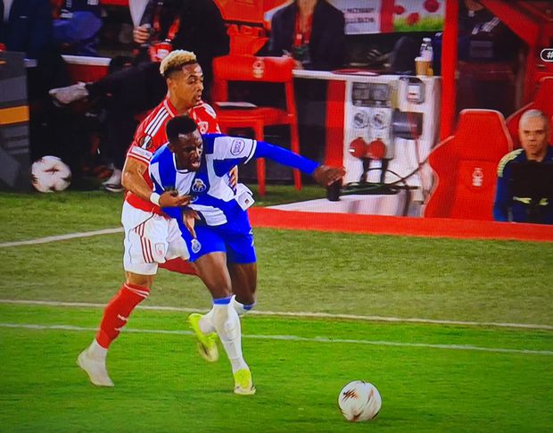 O vermelho mostrado ao central dos dragões resultou de uma correta intervenção do VAR: há mesmo uma falta grosseira!