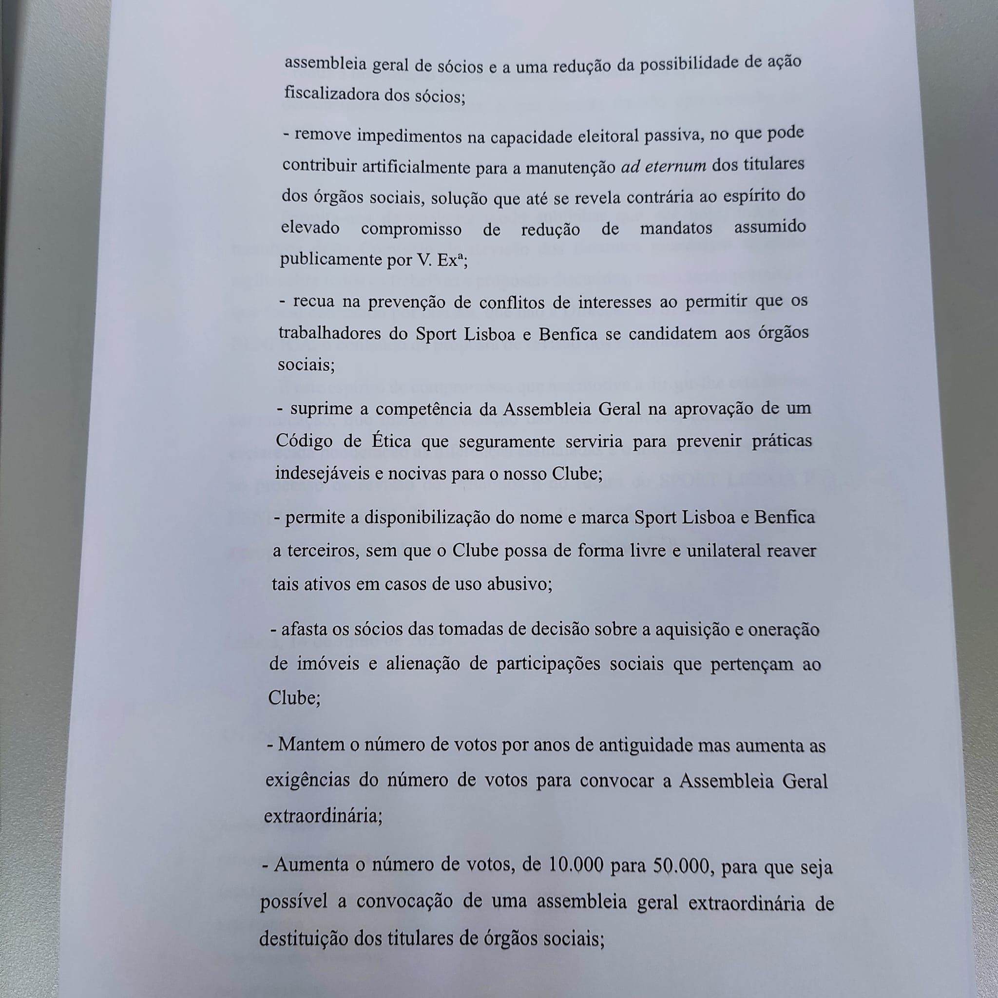 Quiseram, por isso, demarcar-se do texto que foi apresentado aos sócios, e deixaram 11 (!) alertas que fazem soar alarmes em relação à condução do processo e ao teor de algumas dessas alterações introduzidas pela direção encarnada: